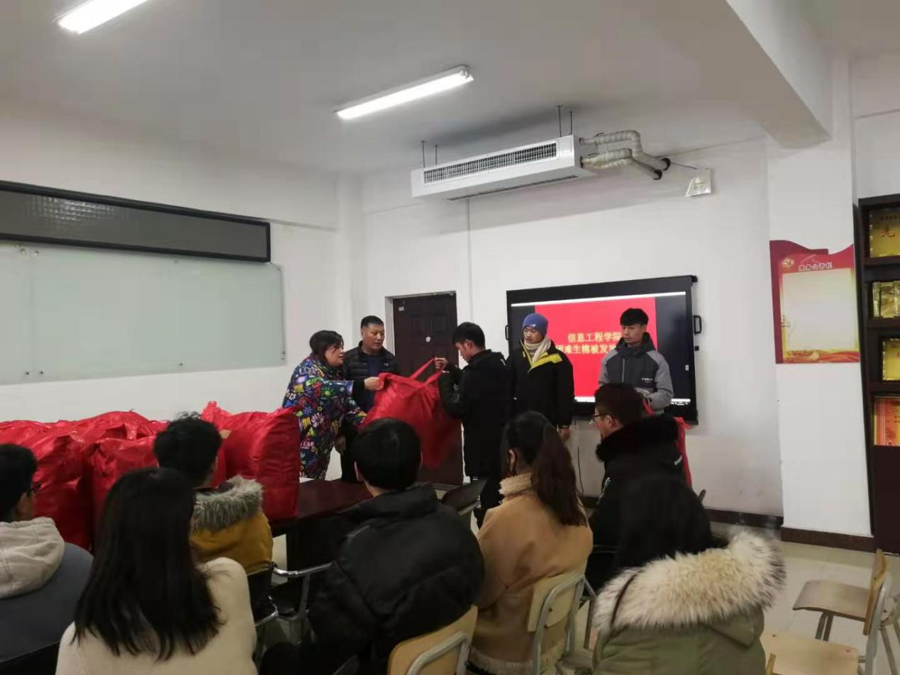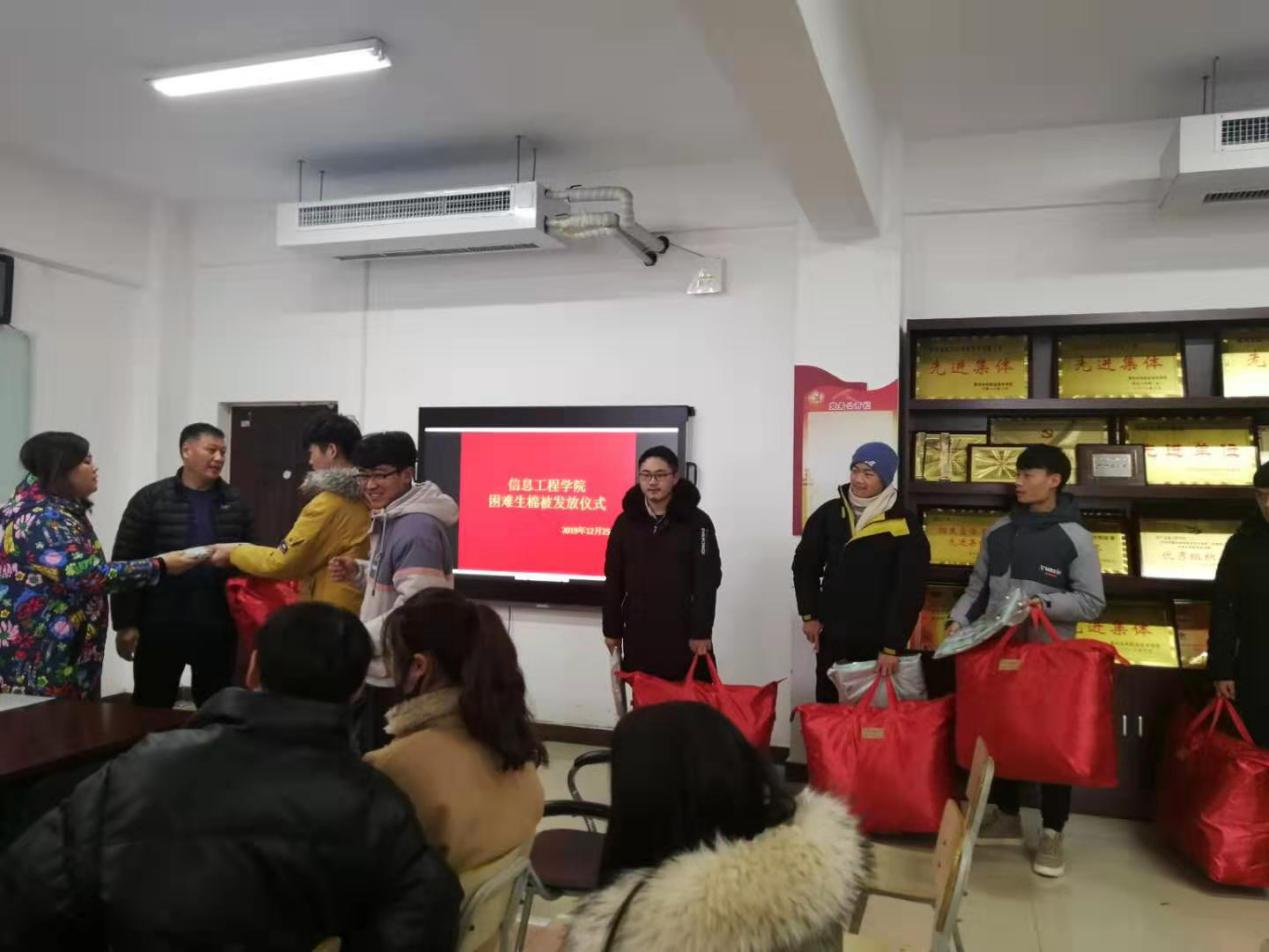 2019年12月25日在SY5508会议室信息工程学院举办了爱心棉被发放活动。党总支书记罗朝峰、副书记李晓娟参加活动。