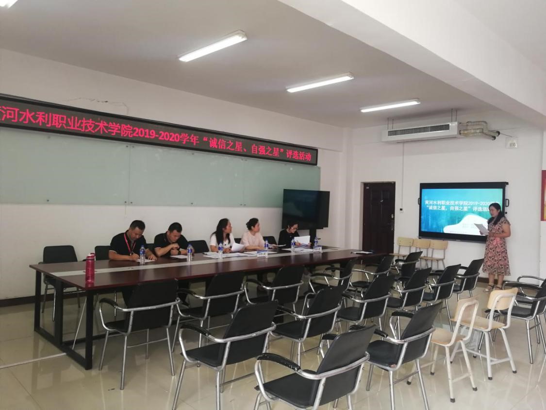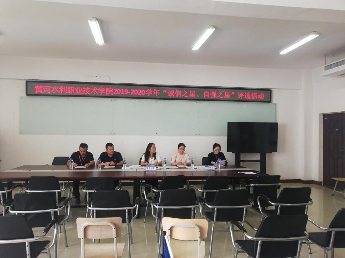 6月24日下午,由我校学生资助管理中心主办、信息工程学院承办的2019-2020学年“诚信之星”“自强之星”评选活动,终评环节在5号实训楼5508举行。出席本次活动的评委有党委宣传部副部长王靖、学报编辑部副主任姚芬、团委副书记耿风、招生就业服务中心副主任万勋、资助管理中心科长董新法,本次活动由信息工程学院陈文静老师主持。