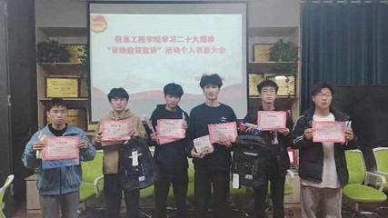 3月24日,信息工程学院举行了资助政策宣讲个人表彰大会,大会上颁发了荣誉证书和奖品以鼓励在活动中表现优秀的同学。