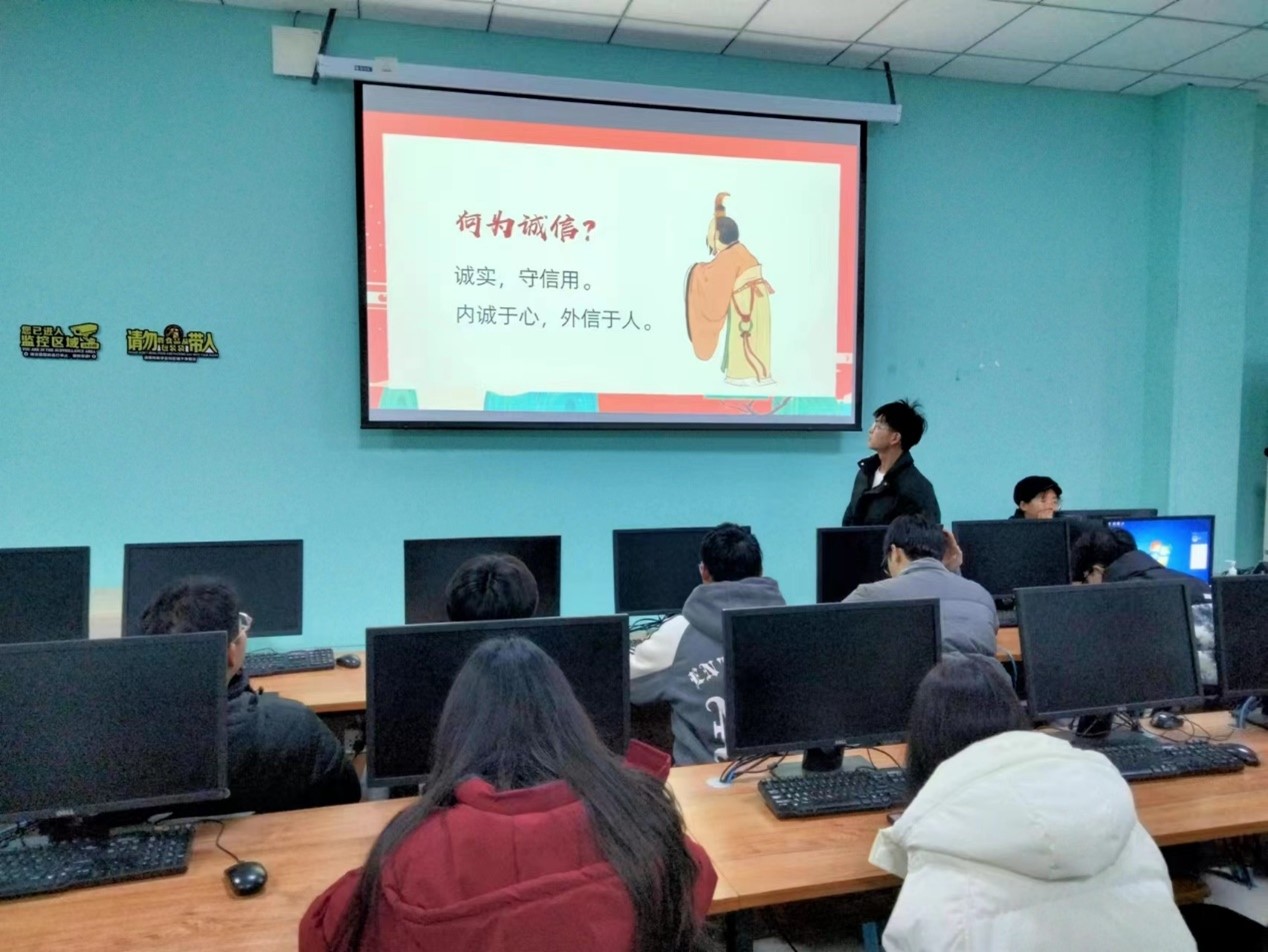 为进一步提高学生的诚信意识,培养学生的诚信品质,推动国家助学贷款工作的持续发展,增强资助育人成效,2023年12月5日我院于SY4407A2举行了一场以诚信教育为主题的班会活动。会议由张梦榛老师主持。
