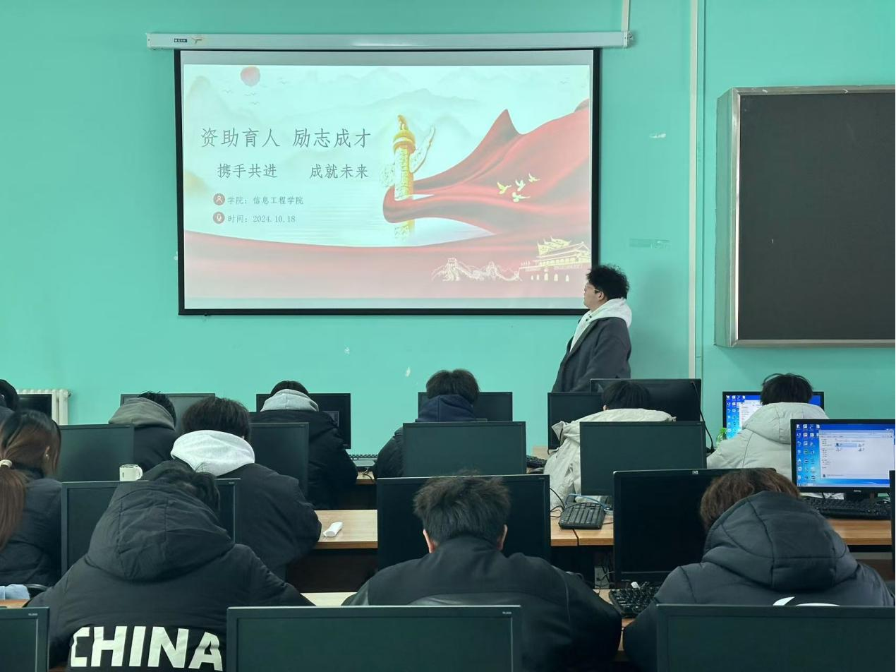 为深入贯彻国家资助政策,响应国家资助育人的号召,信息工程学院于2024年10月18日在SY4405c教室举办了一场以“资助育人,励志成才”为主题的资助宣传活动。此次活动的目的是深入宣传国家资助政策,激发学生的励志精神,为他们的成长成才之路添砖加瓦。