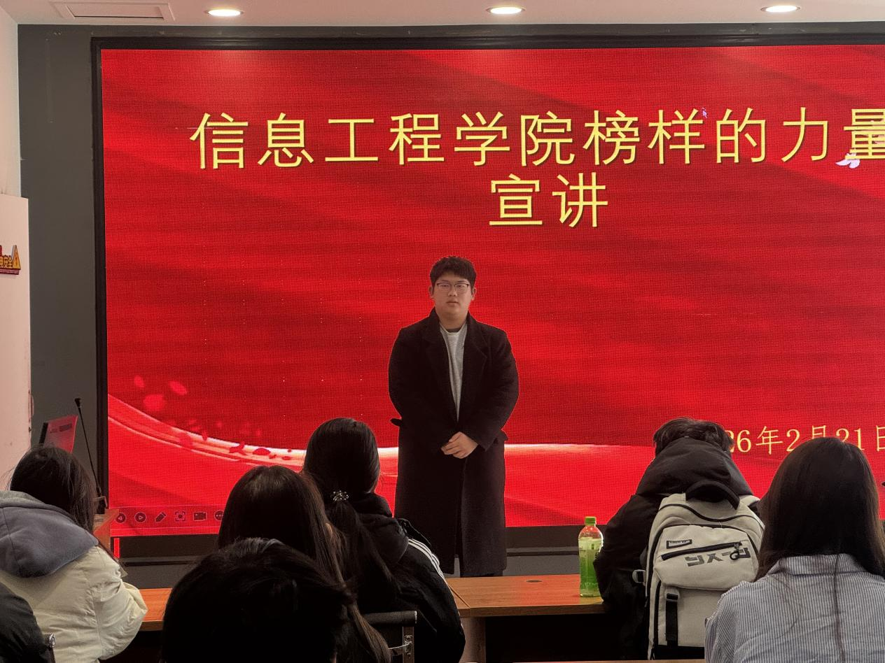 随着高校学生资助工作的持续推进,信息工程学院积极推动资助工作从基础保障模式向“扶志”与“扶智”并重的发展型资助模式转变,旨在使资助政策既能提供经济支持,又能激励学生成长。2025年2月21日,于实训楼4405C教室举办了以“榜样的力量”为主题的宣讲会。此次宣讲会选取了两位在不同领域表现出色的受助学生代表,他们不仅是资助政策的受益者,更是凭借自身努力取得优异成绩的典型范例。