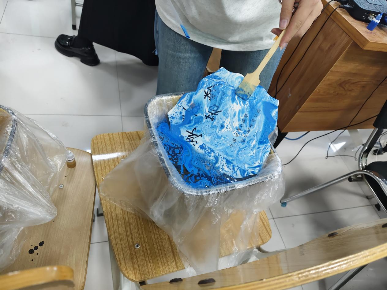 活动现场,同学们以资助育人为灵感源泉,挥洒创意,在扇面上尽情绘画书写,将内心的感激与憧憬化作一幅幅生动传神的图案。他们精心调配漆色,于水面上勾勒出细腻雅致的花纹,再将扇子缓缓浸入,待其轻盈浮起,一把把既具艺术价值又饱含文化底蕴的漆扇便跃然眼前。