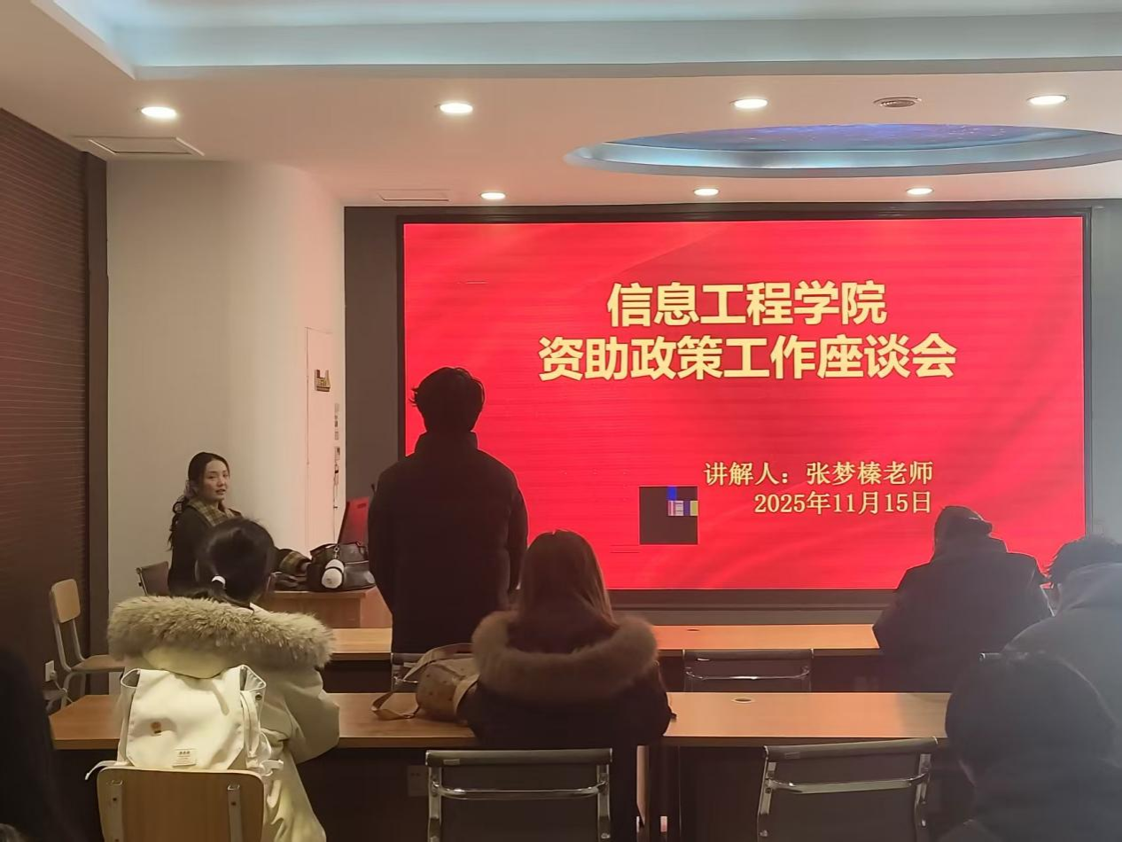 信息工程学院于2025年11月15日举办了“资助政策工作座谈会”。这次活动由张梦榛老师牵头,资助部干事辅助组织。举办此次座谈会的目的是帮助广大同学深入了解资助工作的意义与内容,引导同学们以更踊跃的态度配合相关工作,同时激励资助工作者更好地践行服务宗旨。