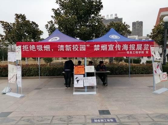 313日,信息工程学院举办以“拒绝吸烟,清新校园”为主题的宣传活动。信息工程学院学生会在禁烟岗里向路过的来往师生展出同学们手绘的禁烟海报,通过立意新颖的手绘海报使广大师生吸烟有害身体有了更深刻的认识,大力倡导同学们公共场所禁止吸烟。