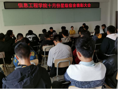为了进一步加强院学生宿舍管理工作,提高学生自我服务意识,2019年11月15日中午,我院在实训楼5508举行10月份星级宿舍表彰大会,参加此次表彰大会的有院分团委书记高欣、2019级辅导员孙远灿、学生会维权服务部全体学生干部以及2019级全体学生宿舍长。