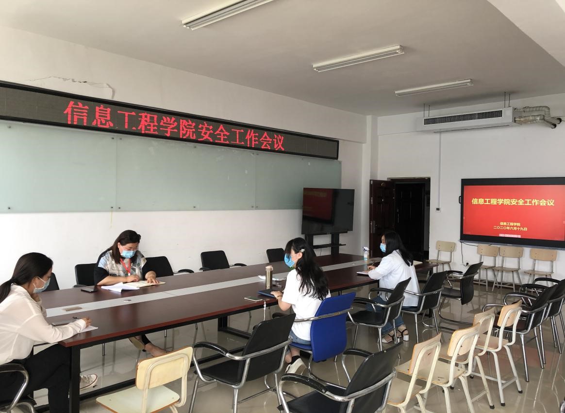 619日下午,信息工程学院在SY5508召开学生管理安全工作会议。讨论部署近期学院安全生产、安全隐患的排查整治工作。信息工程学院全体辅导员参会,会议由党总支副书记李晓娟主持。