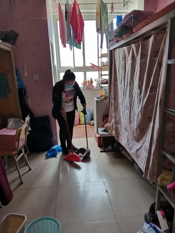 由于受疫情影响学校一直未能开学,学生宿舍长时间处于封闭状态无人居住,宿舍空气不流通,加之一些学生假期前离校时归心似箭行程匆忙,未能打点好宿舍的物品,存在着一些床铺没来得及收拾,一些垃圾没来得及处理,甚至一些或贵重或急需的物品如电脑等没有带走,给学生居家上课造成困扰。