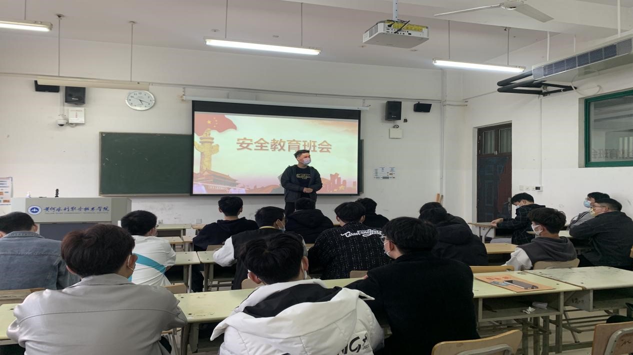 信息工程学院辅导员崔健组织微机应用2201全体学生于3月02日在实训楼4405A1召开校园安全主题班会,根据校学生工作安全会议内容,向学生传达新学期的注意事项,其中包括校园安全,出行安全,身体健康安全,财产安全等,也对新学期的纪律对同学们提出要求。