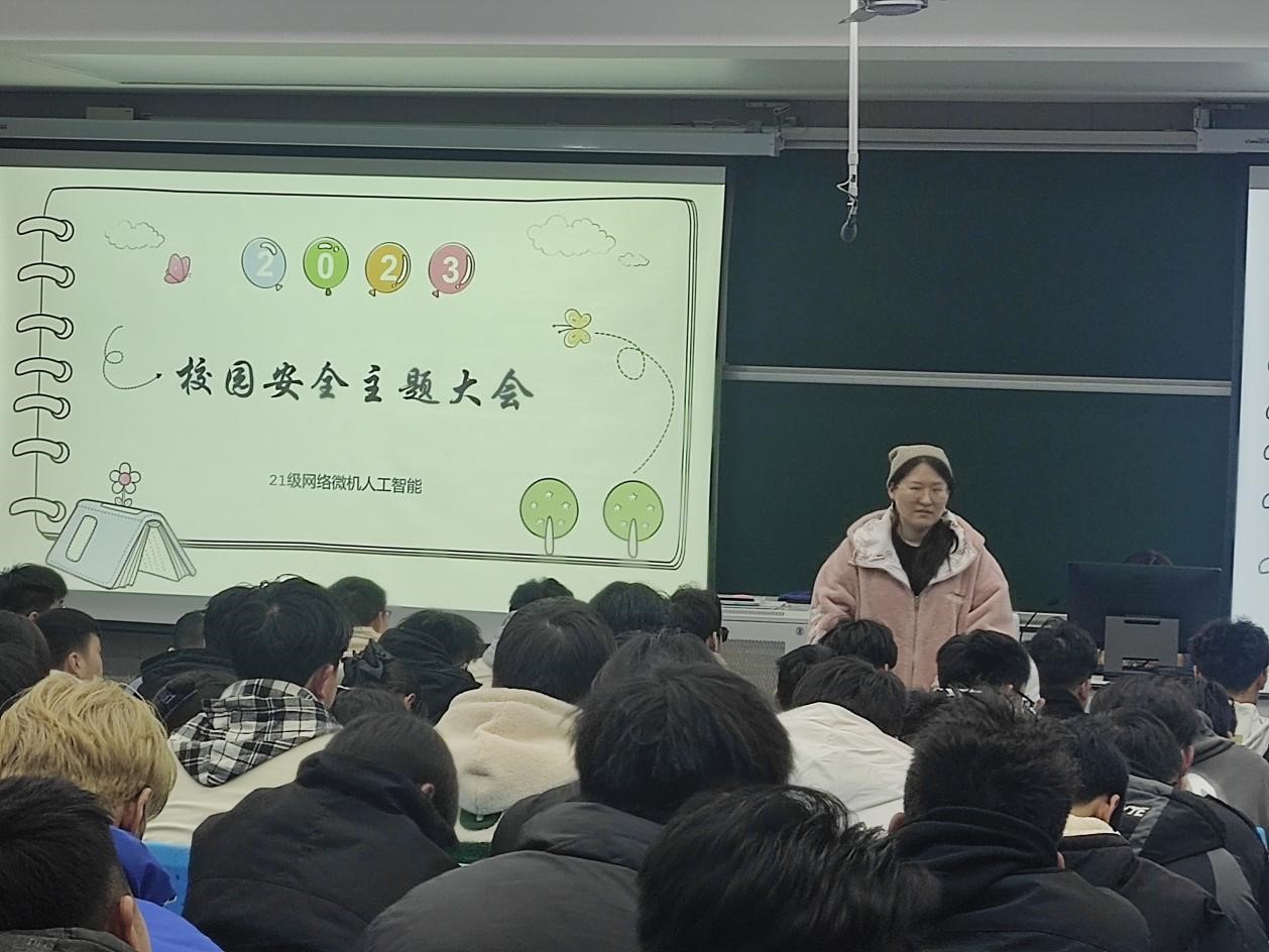 信息工程学院辅导员张梦榛组织云计算2201、网络安全2201、人工智能2201全体学生于220日在JX2102教室召开校园安全主题班会,主题是关于校园防诈骗、财产安全、出校门后的交通安全、心理健康、宿舍推销的处理方式等内容。