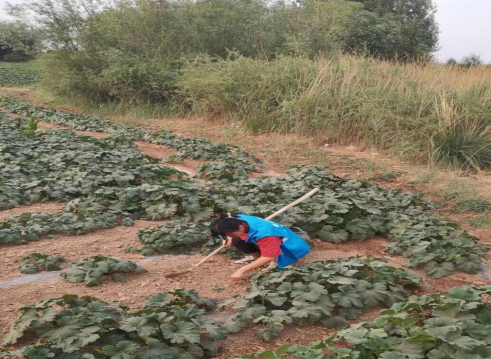 为积极参与基层服务,信息工程学院“春雨晨曦新青年志愿服务团”数字媒体2102班实践团成员郭宇璐同学在内蒙古自治区巴彦淖尔市磴口县渡口镇帮助年迈老人除草。