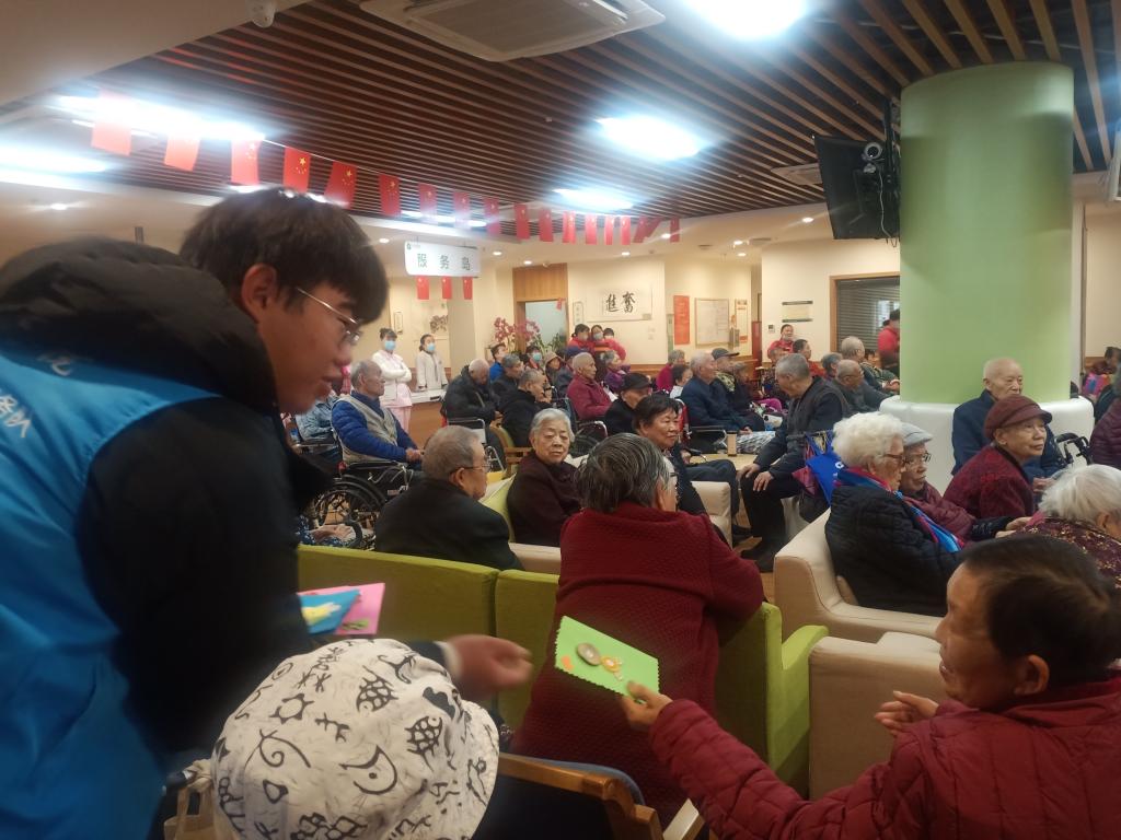 26日上午,志愿者们9:00到达养老公寓并带去一段由信息工程学院各班代表带来的视频祝福,并为长辈们送出亲手制作的感恩节贺卡,长辈们接过贺卡后,脸上都露出了开心的笑容。