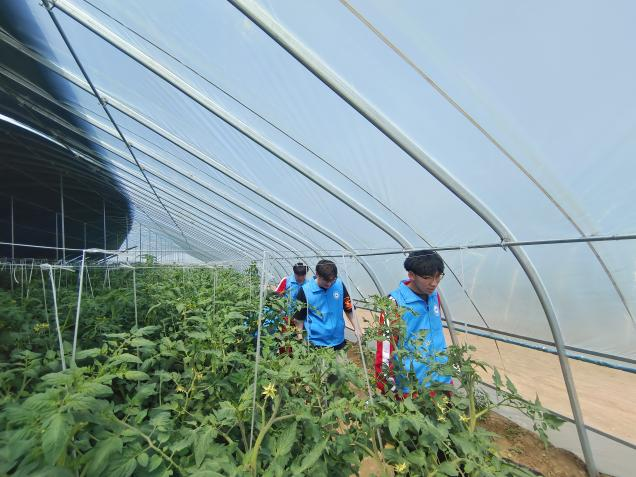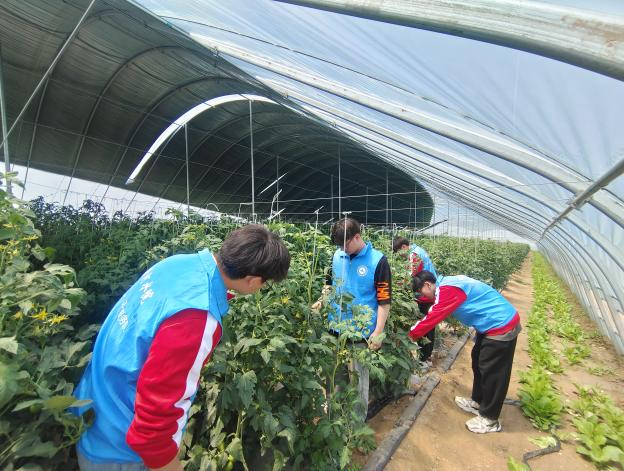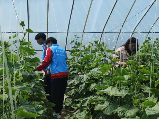 随后来到我校对郭景村种植产业示范基地开展现场指导,讲解黄瓜、番茄等农作物的除草、施肥、滴灌时间和滴水量等技术要点,解答村民提出的相关问题和疑虑,提升村民种植技术水平,并购买农产品助力消费帮扶。
