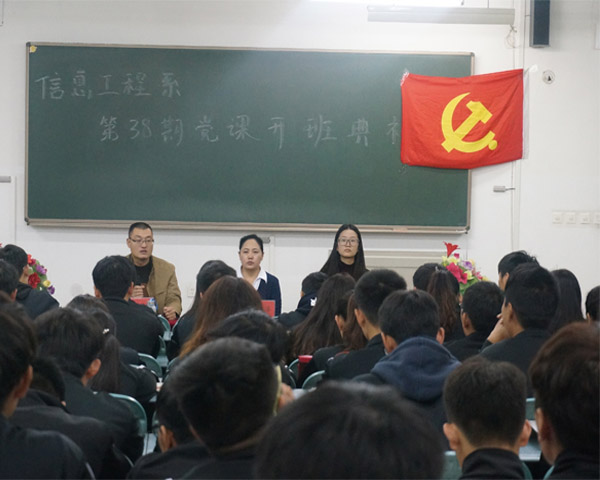 我系第38期党课开班典礼于2015年10月25日上午8时,在JX4201教室隆重召开,我系党总支书记丁爱萍,分团委书记彭战松,15级辅导员蒋晓絮和第38期党课学员出席了党课开班典礼,本次党课开班典礼由蒋晓絮老师主持。