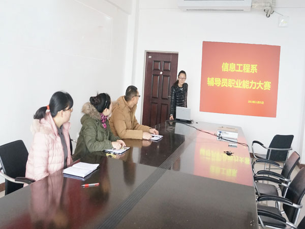 11月31日下午,我系辅导员职业能力大赛在SY5508成功举行,副书记殷莺,系分团委书记彭占松以及14级辅导员张瑞青、15级辅导员蒋晓絮出席大赛。