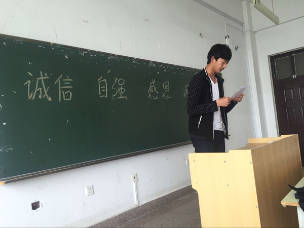 为了培养学生的诚信感恩意识,激发学生的感恩情怀,营造浓郁的明德知理、修身成才氛围,我系于2016年4月28日中午1点在jx3501教师举行了以“诚信、自强、感恩、励志”为主题的助学金励志班会。微机1班、网络2班的全体受助同学参加了本次班会。