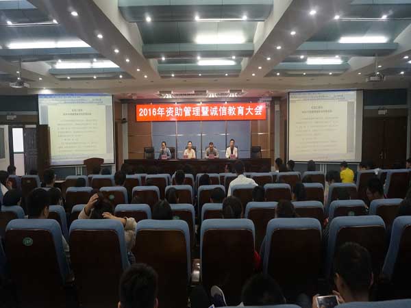 贷款圆梦助理想,还款争做诚信人。为加强学生诚信教育,培养大学生的诚信意识,落实好助贷联动,以助还贷的管理工作,我系于10月20日中午1点在3号实训楼学术报告厅隆重召开了资助管理暨诚信教育大会。本次会议由15级辅导员蒋晓絮老师主持,系党总支副书记殷莺、分团委书记彭战松、16级辅导员贾红军出席,15级和16级全体受奖助贷学生参加。