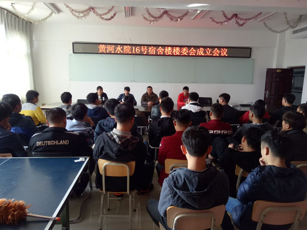 11月3日中午1点,黄河水院16号宿舍楼楼委会成立大会于SY5508举行。出席会议的有信息工程系分团委书记彭战松、16号宿舍楼楼长王亚平及楼委会全体委员。