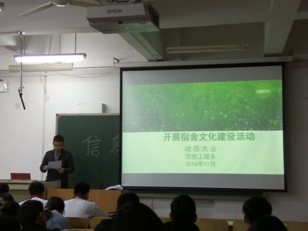 为进一步推进寝室文明建设,营造温馨舒适的寝室环境,丰富大学生宿舍文化生活。11月15日13:30时,我系15级、16级全体同学分别在jx2102、jx2202教室召开宿舍文化节动员大会。会议分别由15级辅导员蒋晓絮老师与16级辅导员贾红军老师主持。