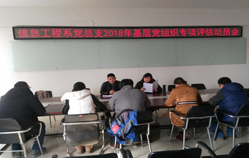 2018年1月31日上午,我系在会议室召开关于开展2018年基层党组织专项评估动员大会。会议由系党总支书记商坤主持,信息工程系党总支委员、各党支部书记、全体支委成员十余人参加会议。
