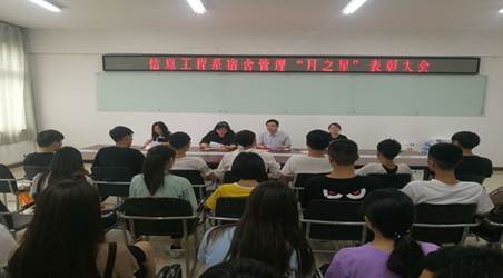 5月29日下午3点30分,信息工程系在实训楼5508会议室召开四月“月之星”表彰大会。参加此次会议的有:我系党总支副书记李晓娟,大一辅导员郭晓娟老师、李静老师,大二辅导员贾红军老师,以及大一大二各个宿舍代表。