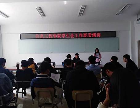 2018年10月26日中午,信息工程学院学生会在SX5508进行了关于工作职责的演讲,参会人员为学生会各部门负责人,会议由学生会负责人魏玉硕主持。