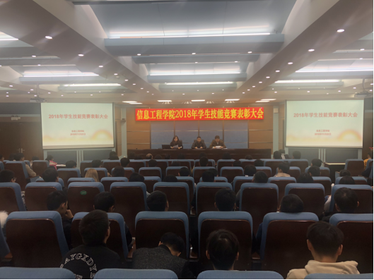 为激励同学们的对学习的热爱,信息工程学院于11月23号下午一点半在SX3301水利报告厅,举行2018年学生技能竞赛表彰大会,参加会议的领导有:信息工程学院党总支书记罗朝峰、党总支副书记李晓娟,以及全体获奖人员。