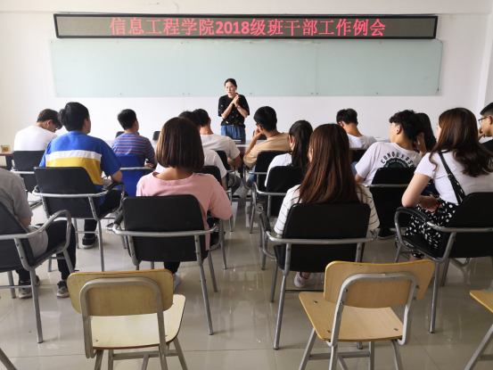 5月21日中午,信息工程学院2018级网络、微机专业全体班干部工作例会在SY5508召开,辅导员牛婉老师主持此次会议。