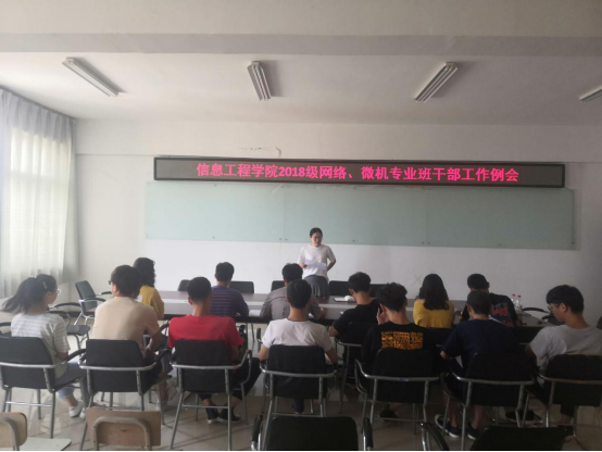 6月1日上午,信息工程学院2018级网络、微机专业全体班干部工作例会在SY5508召开,辅导员牛婉老师主持此次会议。