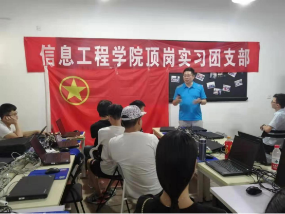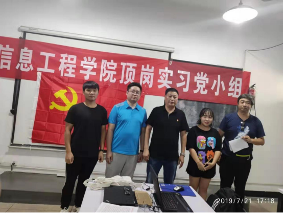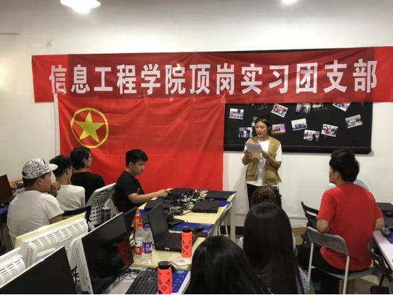 2019年7月21日下午四点,信息工程学院在浙江杭州赢动公司召开团员大会,成立顶岗实习党小组和临时团支部,参与本次大会的有信息工程学院党总支书记罗朝峰、信息工程学院副院长曾赟、信息工程学院数字媒体教研主任姜锐。