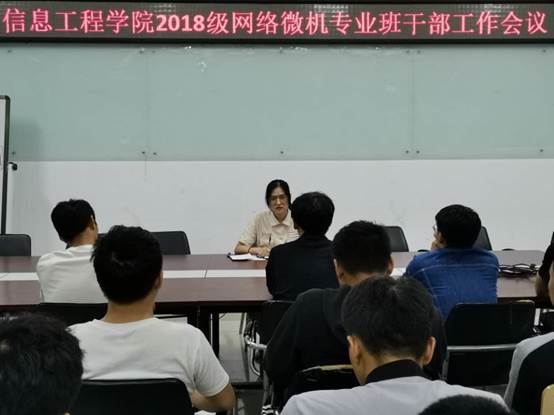 为进一步加强班级学生的组织管理工作,9月23日晚上信息学院2018级微机、网络专业所有班干部在实训楼5508办公室召开了班干部工作会议,本次会议由18级辅导员牛婉主持。