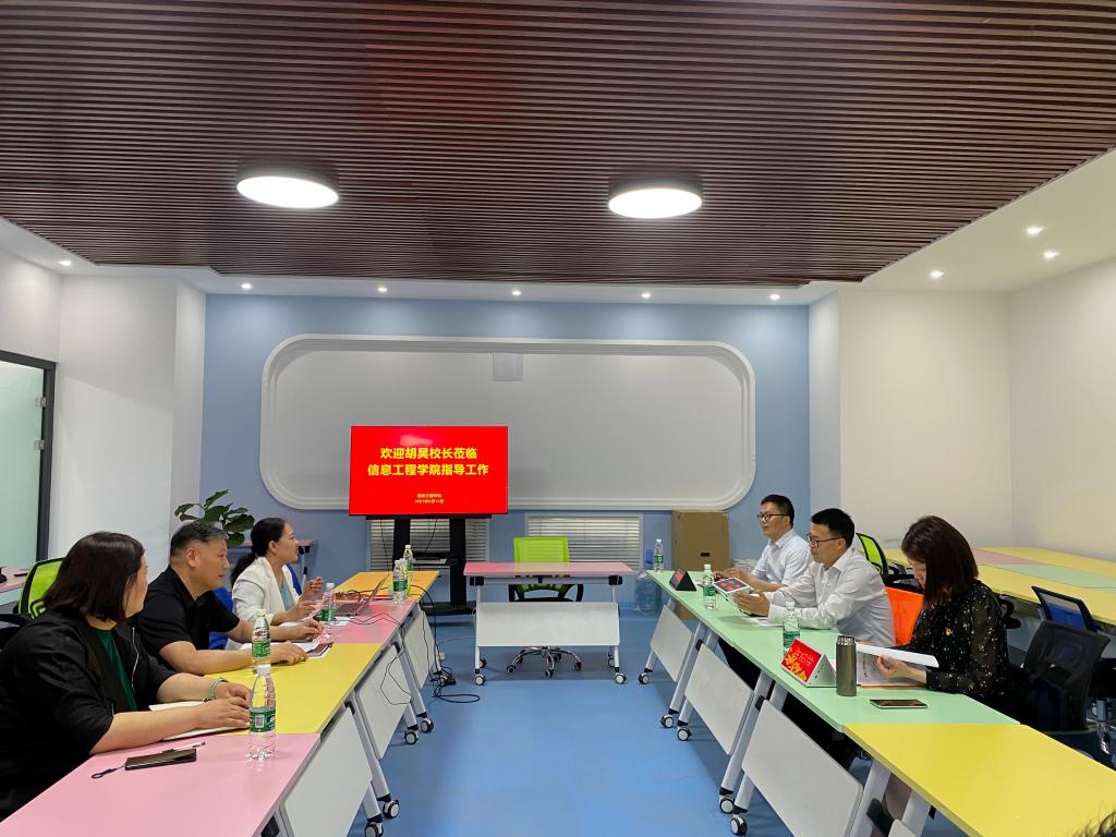 校长胡昊在听取完汇报后,对信息工程学院全体师生所做的工作和取得的成绩给予高度赞扬,对教师团队在有限的条件中敢于亮剑、能打硬仗、能打胜仗的精神表示充分肯定。对进一步做好学院建设及发展提出要求。一是在师资队伍建设方面要迎难而上、苦练内功,打铁还需自身硬,要在升本队伍建设中起到关键作用,发扬新时代信息人敢为人先的精神。二是在科研平台建设中要再下功夫,在创新体系中科研是不可或缺的重要组成部分,也是高水平研究、优秀研究型人才培养的重要输出阵地,在加强平台建设的同时要完善相应建设措施。三要进一步加强国际化合作,以大禹学院为依托,突出专业特色与优势,努力打造国际化特色办学品牌。他指出,信息工程学院要在当前成绩基础上,守初心、担使命,为学校建设继续添砖加瓦。