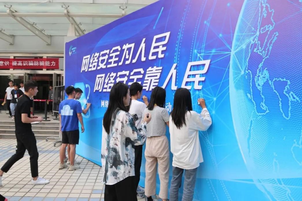 随后活动组织同学们在“网络安全为人民,网络安全靠人民”的宣传展板上签名。在签名过程中,何昕老师还同时宣传了一些常见的网络安全和网络防诈骗知识,并提醒大家文明上网,遵守国家网络安全法律法规,争做好网民,传递正能量。签名结束时,大家还领取了一份精美小礼品留作纪念。