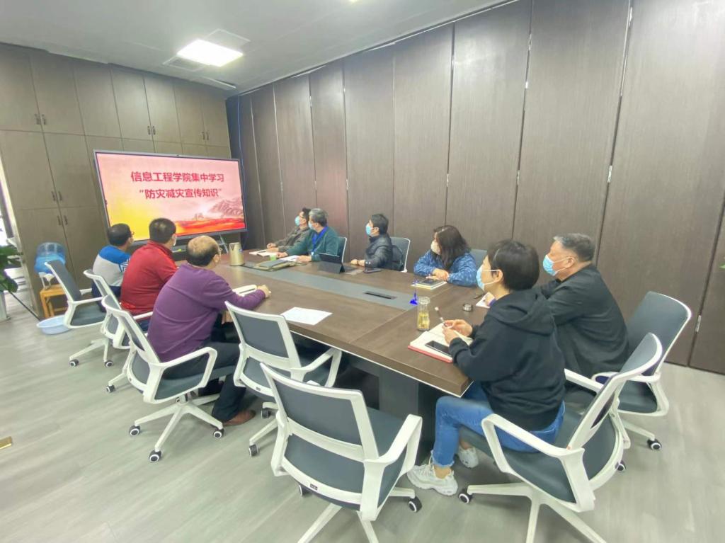 5月12日是我国第14个全国防灾减灾日。为向广大师生普及防灾减灾知识,提升广大师生灾害风险防范意识和能力,根据我校发布的《关于开展防灾减灾宣传周活动的通知》文件要求,信息工程学院组织教职工集中开展防灾减灾相关知识的学习活动。