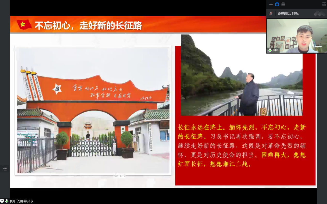 本次团课,何昕老师通过详细讲述湘江战役这一历史事件,以PPT和视频相结合的方式,丰富了课堂学习内容。团课上,何昕老师表示学习党史是坚定理想信念的必由之路,是加速成长成才的有效途径,党史学习教育是推进社会主义核心价值体系建设的重要任务,也是推进中华民族伟大复兴历史伟业的必然要求。同时希望团校学员要不忘初心、牢记使命,学以致用,为家庭、学校、社会、国家贡献属于青年一代的力量,走好新的长征路。