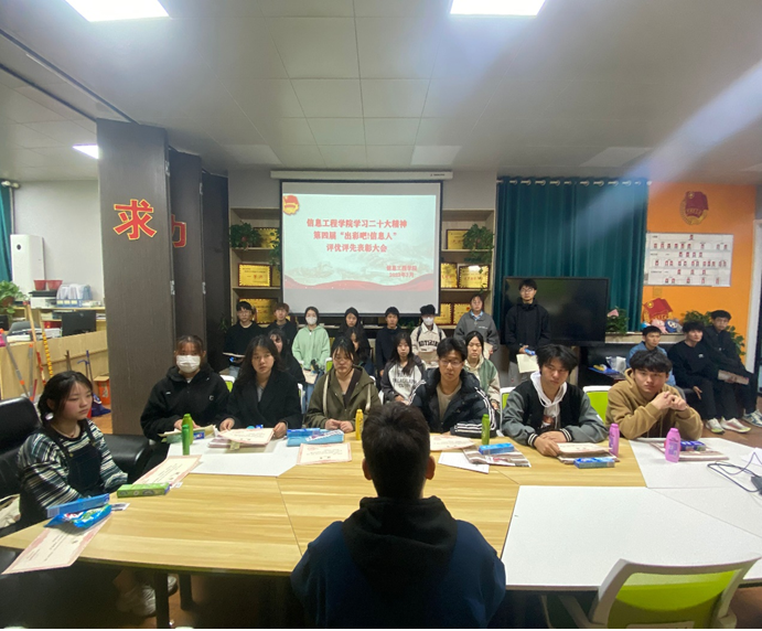 为进一步贯彻习近平新时代中国特色社会主义思想,学习宣传贯彻党的二十大精神、共青团十八届七中全会精神,引领青年思想,推进成果转化,促进学院学生工作顺利开展,表彰先进树立典范。信息工程学院于2023年3月24日在SY4409开展第四届“出彩吧,信息人!”表彰大会,会议由信息工程学院分团委何昕老师主持。
