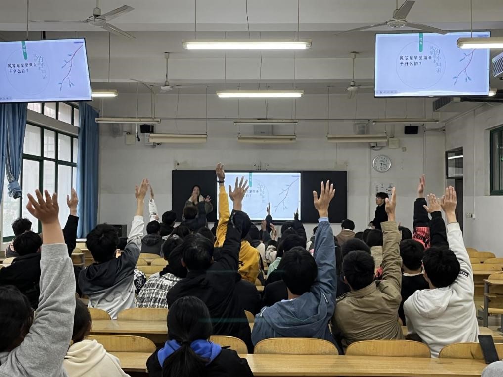 活动伊始,张梦榛老师用生动语言介绍风筝的历史和发展,然后请同学们观看一段关于风筝的视频,并请同学们回答关于视频中讲到的风筝小知识。同学们都认真观看视频,积极回答问题,现场气氛热烈。