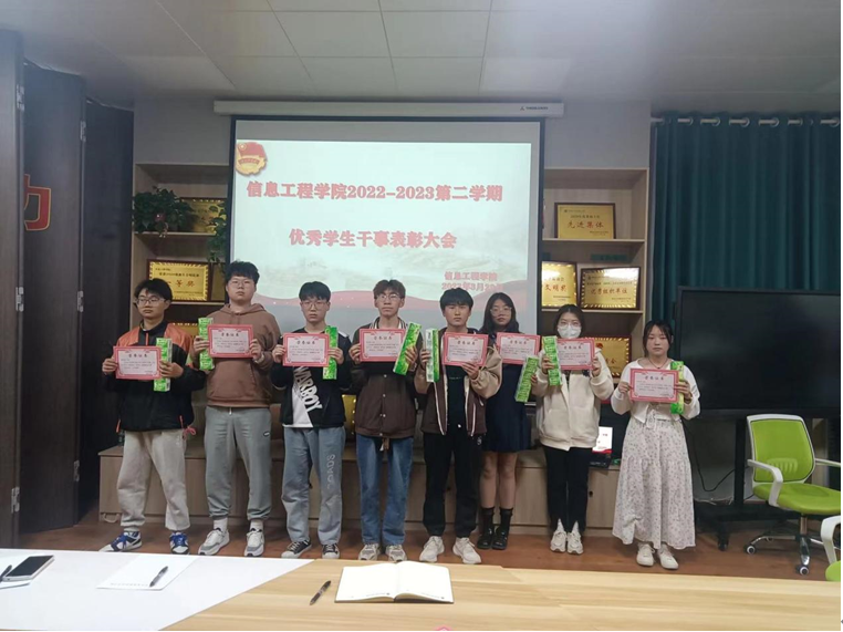 为了表彰先进、树立榜样、激励后进、促进信息工程学院学生会蓬勃发展,信息工程学院于2023年3月29日晚上在sy4409召开了2022—2023学年第二学期优秀学生干事表彰大会。