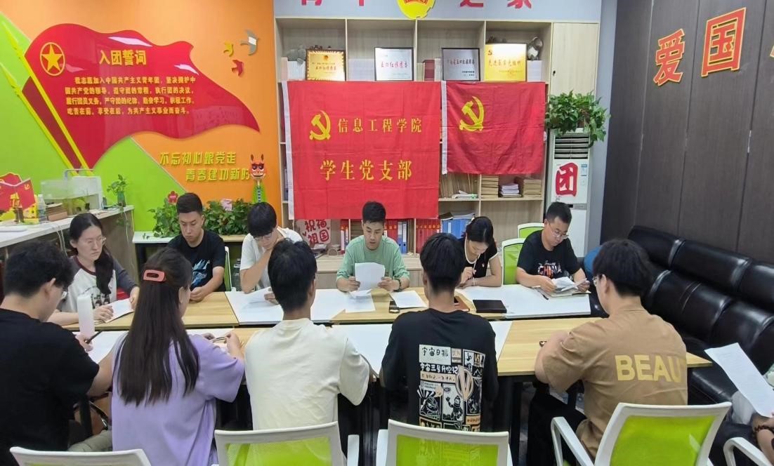 为深入贯彻习近平新时代中国特色社会主义思想主题教育的相关要求,信息工程学院学生党支部于2023年9月19日下午15:00,以线上线下相结合的方式在SY4409B1及腾讯会议开展专题组织生活会。会议由信息工程学院学生党支部书记何昕主持,支部全体党员参加。