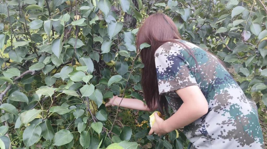 梨园里果香四溢,让人垂涎欲滴。“采梨小分队”在梨园管理员的带领下走进梨园深处,这里果树遍地,树上结着经雨的洗礼而挂满亮晶晶水珠的青绿色梨子,志愿者小分队小心翼翼地采摘,用行动切身体会果农的辛苦,在实践中感受知识。