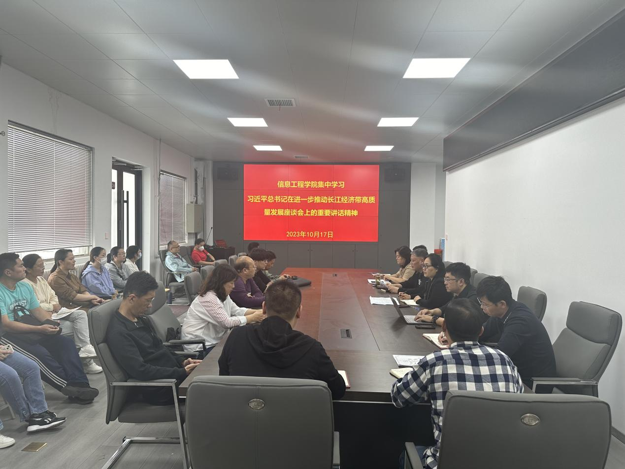 10月17日信息工程学院组织全体教职工开展政治学习,学习和领悟习近平总书记在进一步推动长江经济带高质量发展座谈会上的重要讲话精神。会议由党总支书记罗朝峰主持。