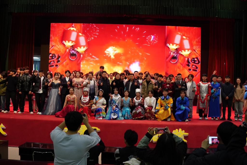 节目结束后,出席领导和演出人员一起上台合影留念。此次晚会在传统歌曲《难忘今宵》中圆满结束。又是一年新气象,希望信息工程学院和艺术与设计学院学子能更上一层楼!