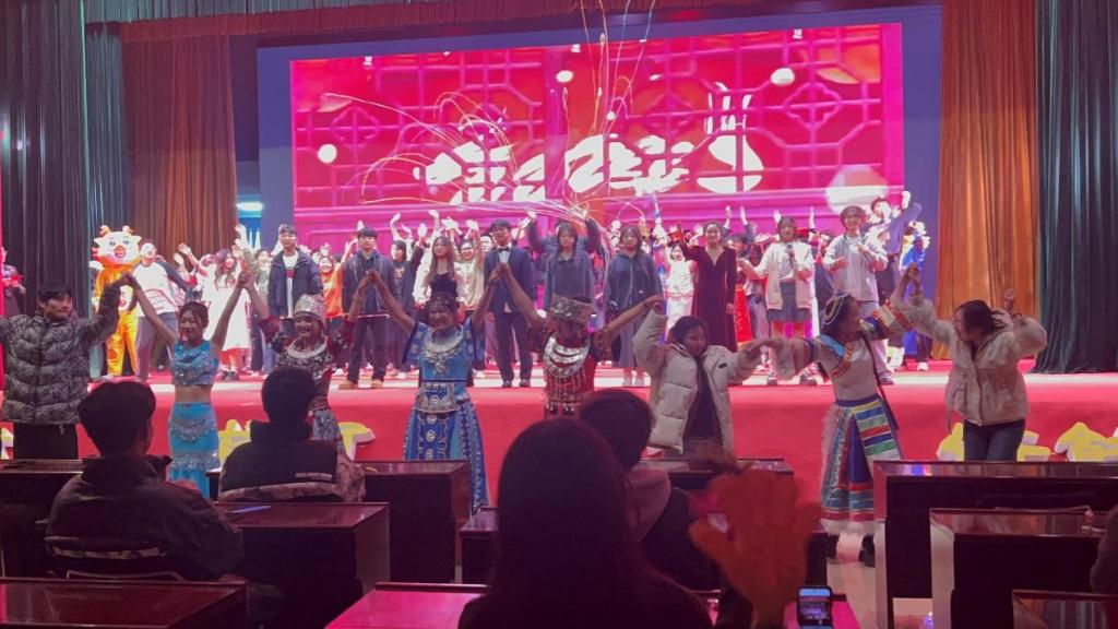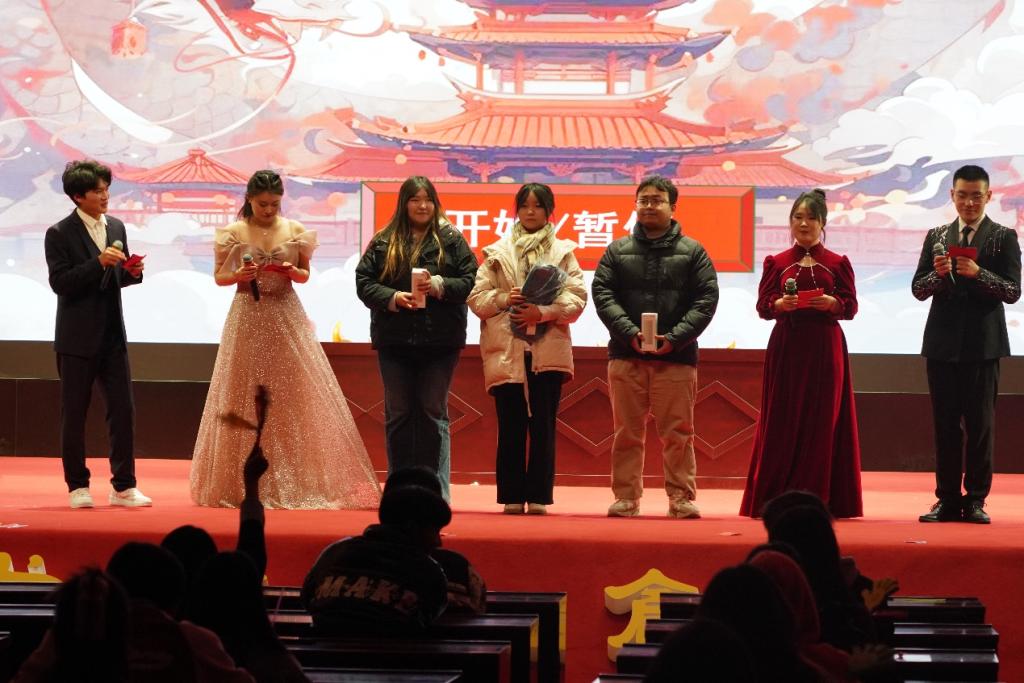 活动伊始,热情洋溢的舞台上以开场舞《一笑江湖》其精彩的表演和激情四溢的舞蹈,拉开了晚会的序幕。伴随着开场舞的进行,我院工作人员为观众们撒下寄托着新年祝福的糖果。观众们不禁为之沉醉,纷纷加入到晚会的氛围之中。诗意之作《梨花又开放》颂词优美动人,,一场情景剧《愿你所愿,爱你所爱》深刻展现了校园霸凌的危害,引起了观众们的思考和关注。伴随着精心设计的舞台效果,进一步引发观众们的共鸣。《白毛女&秀红旗》《青玉案元夕》等节目充斥着红色的浓郁氛围,歌曲《如愿》《小尖尖》《等你下课》《有点甜》用深情的演唱和动人的旋律感染力每一位观众,《春节序曲》古筝与舞蹈是历史与现代的碰撞,宫商角徵编制的歌曲娓娓动听。整个晚会因此更显得充满了浓厚的文艺氛围。