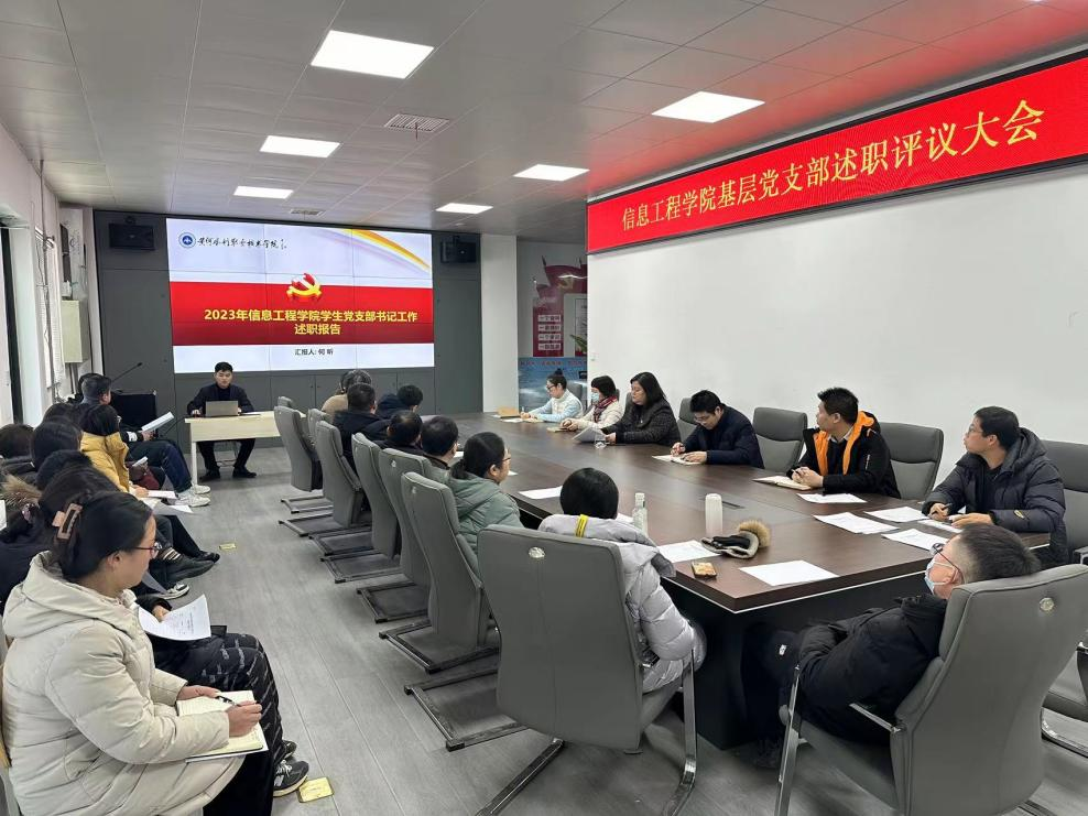 为坚持和加强党的全面领导,夯实基层党建工作基础,落实管党治党政治责任,推进全面从严治党向基层延伸,按照《中共河南省委教育工作委员会 关于做好2023年度党组织书记抓基层党建述职评议考核工作的通知》(豫教工委〔2023〕322 号)《中共黄河水利职业技术学院委员会组织部 关于做好2023年度党组织书记抓基层党建述职评议考核工作的通知》(黄院组〔2024〕1 号)要求,结合信息工程学院党总支的工作实际,2024年1月23日,学院党总支在SY4426会议室召开2023年度基层党支部书记述职评议考核会,全体党员参加会议。会议由院党总支书记李晓娟主持,党建工作督导员王爱琴老师列席会议并指导。