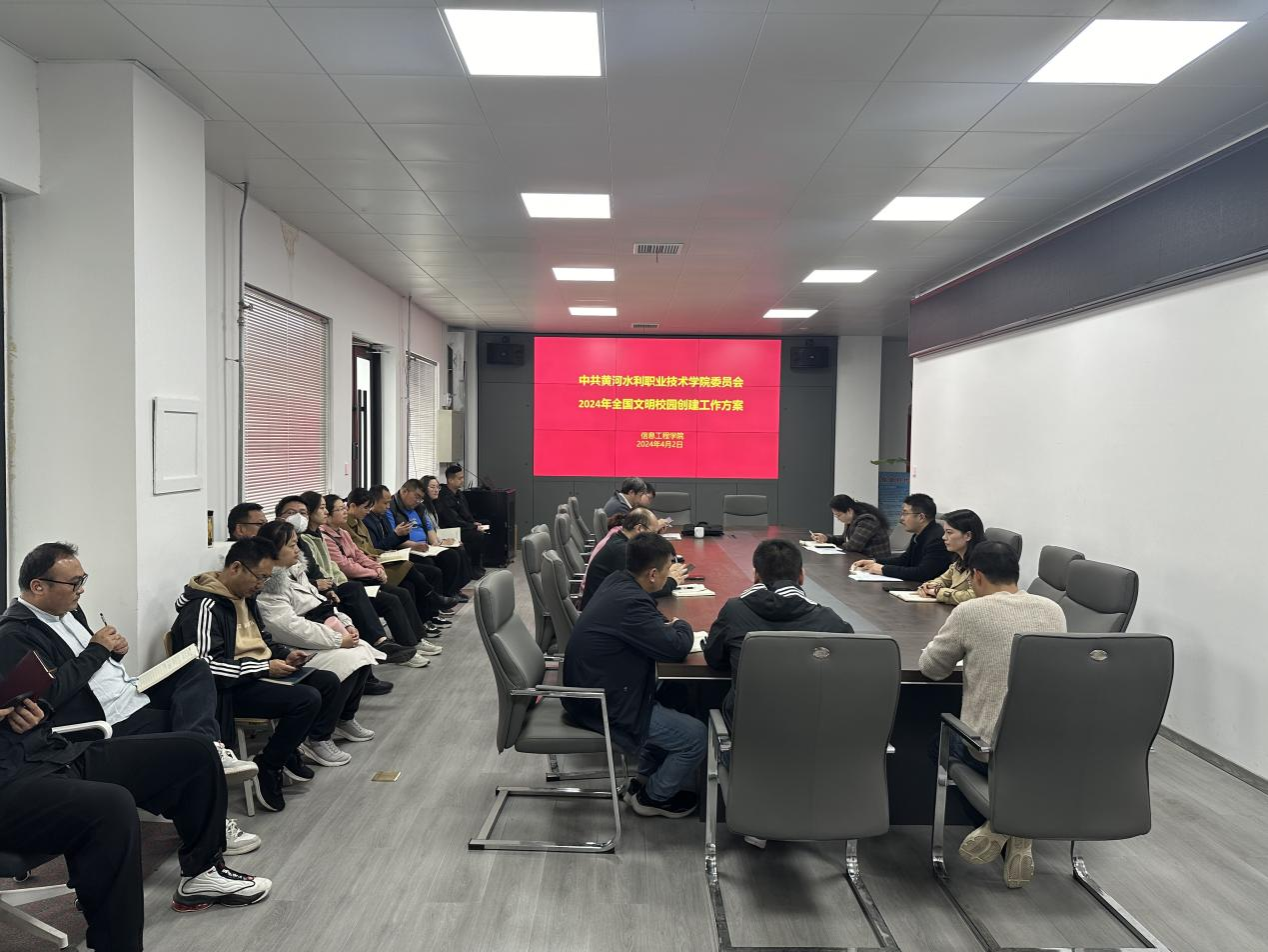 4月2日,信息工程学院组织全体教职工开展政治学习,本次主要学习和领会《黄河水利职业技术学院2024年度全国文明校园创建方案》文件内容和精神。会议由党总支副书记武琳琳主持。