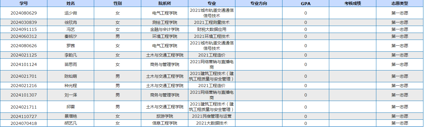 根据《信息工程学院2024年新生转专业面试实施方案》要求,数字媒体技术(AIGC)方向超出接收计划,将组织面试,现将面试公示名单公示如下: