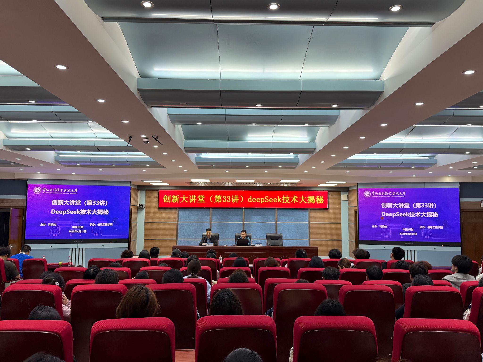 4月11日下午,由科技处主办、信息工程学院承办的第33期创新大讲堂在我校3号实训馆学术报告厅成功举行。本次讲座以“DeepSeek技术大揭秘”为主题,特邀江苏传智播客教育科技股份有限公司大模型高级算法研究员李刚担任主讲。信息工程学院院长吕振雷主持会议,学院全体师生到场聆听,共同探索人工智能大模型技术的前沿发展及其在教学与科研领域的创新实践。