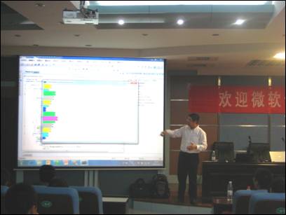 在近两个小时的演讲中,桂素伟用风趣幽默的语言、便捷实用的案例和大家一同分享了微软新一代软件开发平台Visual Studio。通过对比和图表的方式,说明了传统应用程序和.net应用程序的区别,介绍了Visual Studio发展历程,重点讲述了Visual Studio 2008的开发特性。最后,他还向大家展示国内外软件开发业内所使用的主流技术,以及微软最前沿的技术成果和未来10年的技术发展。