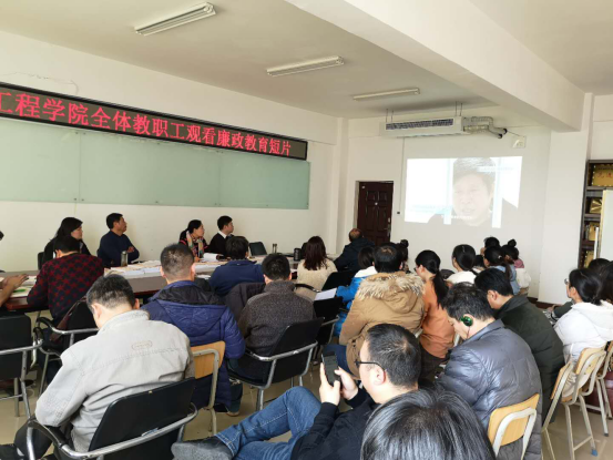 为进一步推进全面从严治党要求,深入学习贯彻党的十九大精神,全面落实党风廉政建设责任,2018年12月18日下午信息工程学院组织全体教职工集中观看廉政教育片。