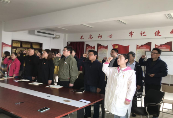 此次活动以总支书记讲党课和专题研讨的形式组织全体教师党员共同开展。首先,活动第一项,由教工支部书记杜娟带领党员同志们面对党旗,重温入党誓词。罗朝峰书记指出此次重温《入党誓词》,旨在时刻提醒我们党员同志们不忘初心,牢记使命,以实际行动全力践行入党誓词,砥砺前行、不懈奋斗。